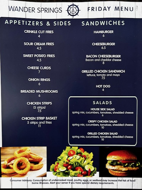 Menu for Saturday thru Thursday